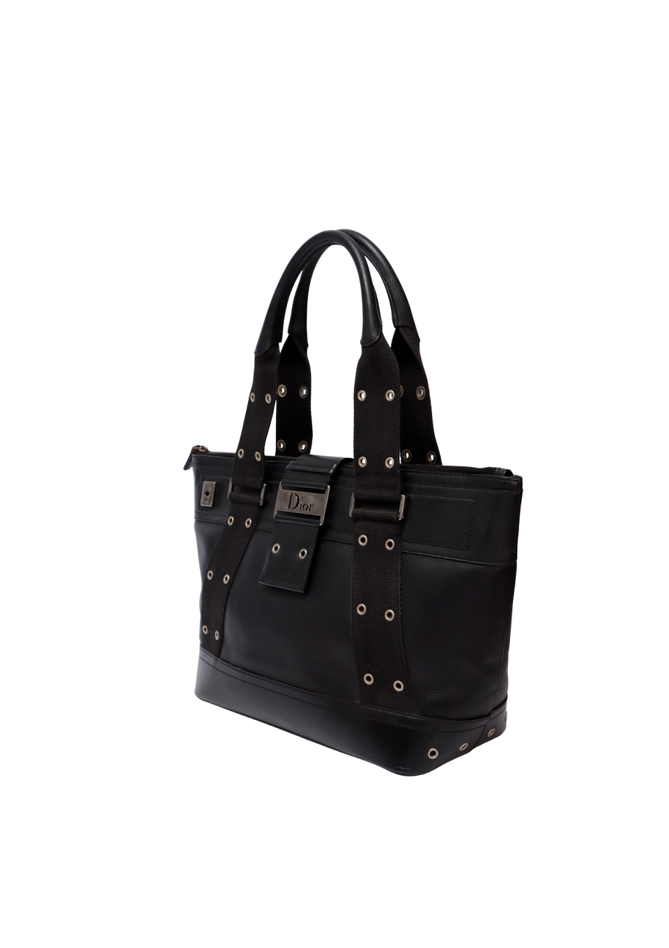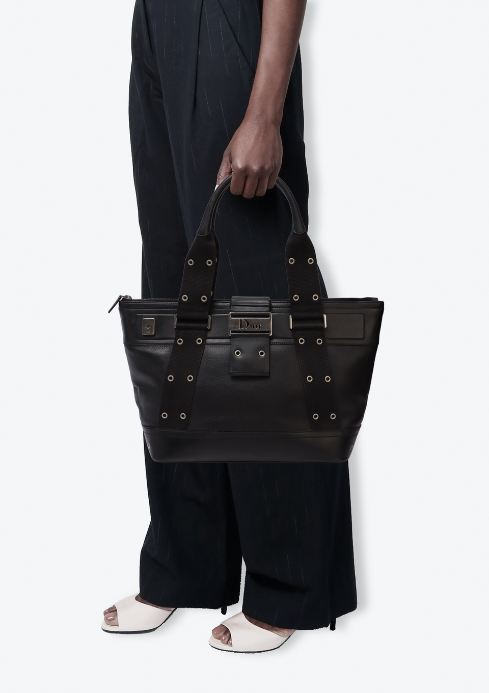 Descrição do Material: Couro calfskin protocol detalhes em tiras de canvas preto