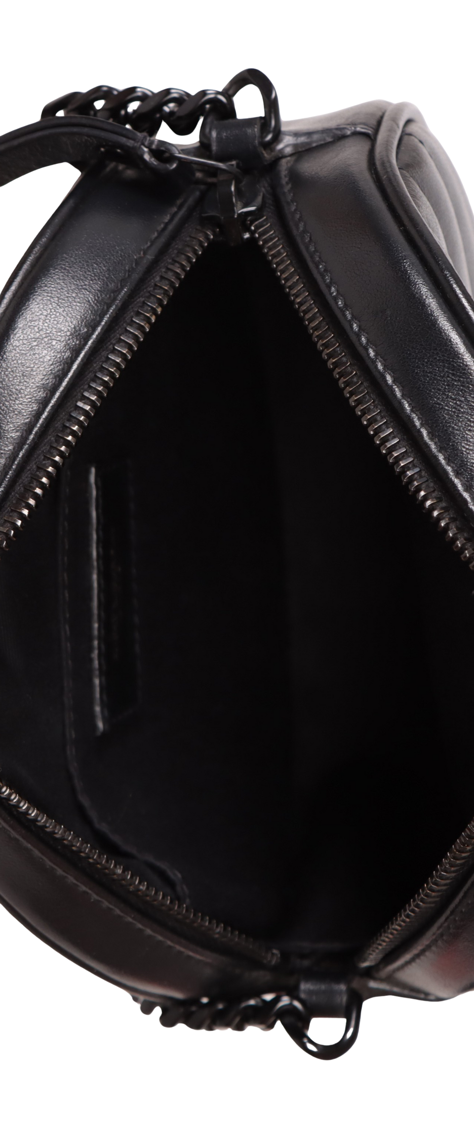 Descrição do Material: Couro calfskin preto com acabamento matelassê chevron