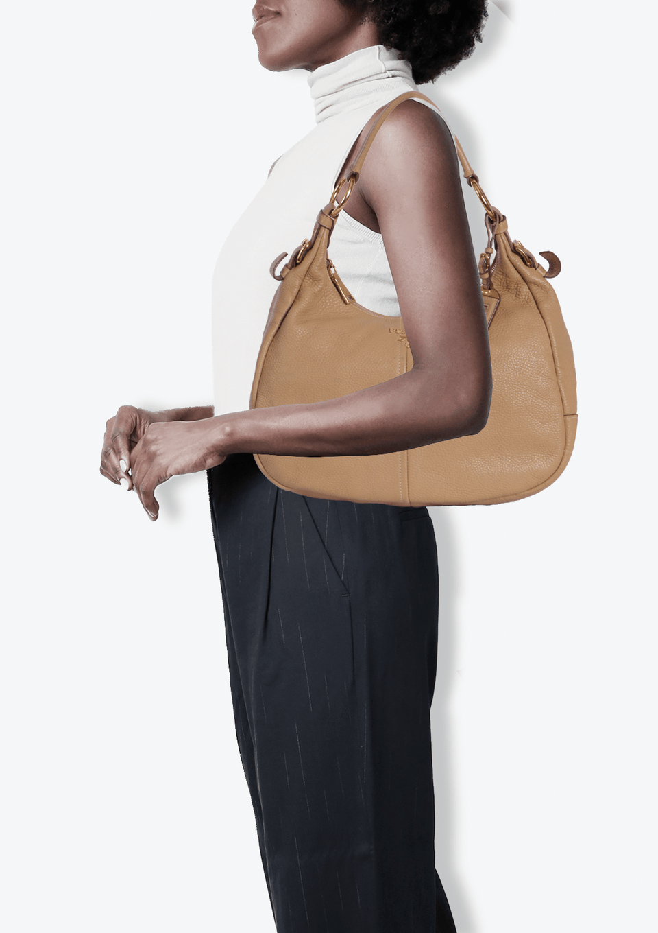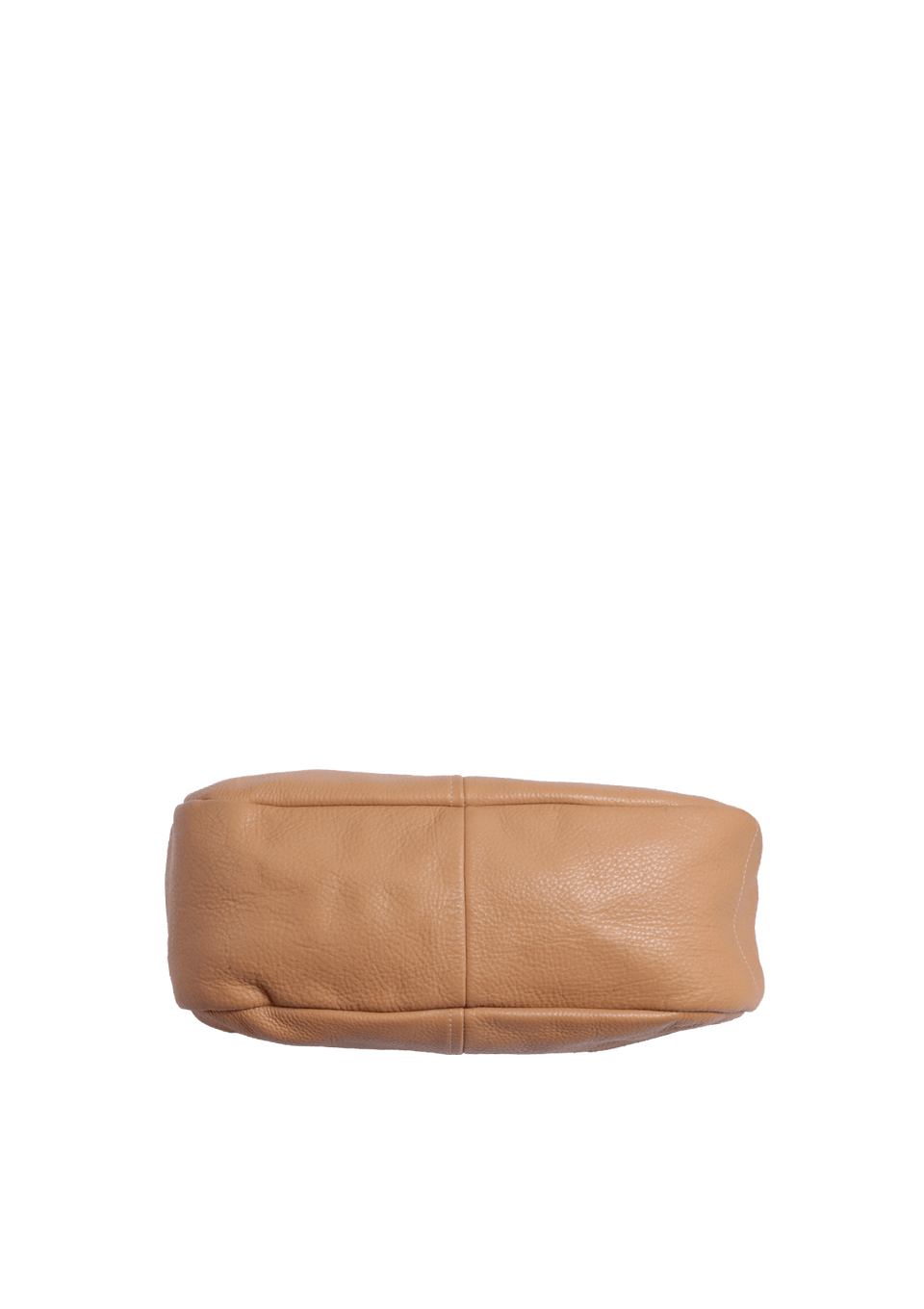 Condição: Bom, com aparência de usado. Apresenta leve perda da estrutura original da bolsa, pequenas manchas escurecidas por todo o couro, principalmente na parte frontal e na alça, leves desgastes nas ferragens, leves deformações dos acabamentos laterais da alça e levíssima descoloração da logo interna.