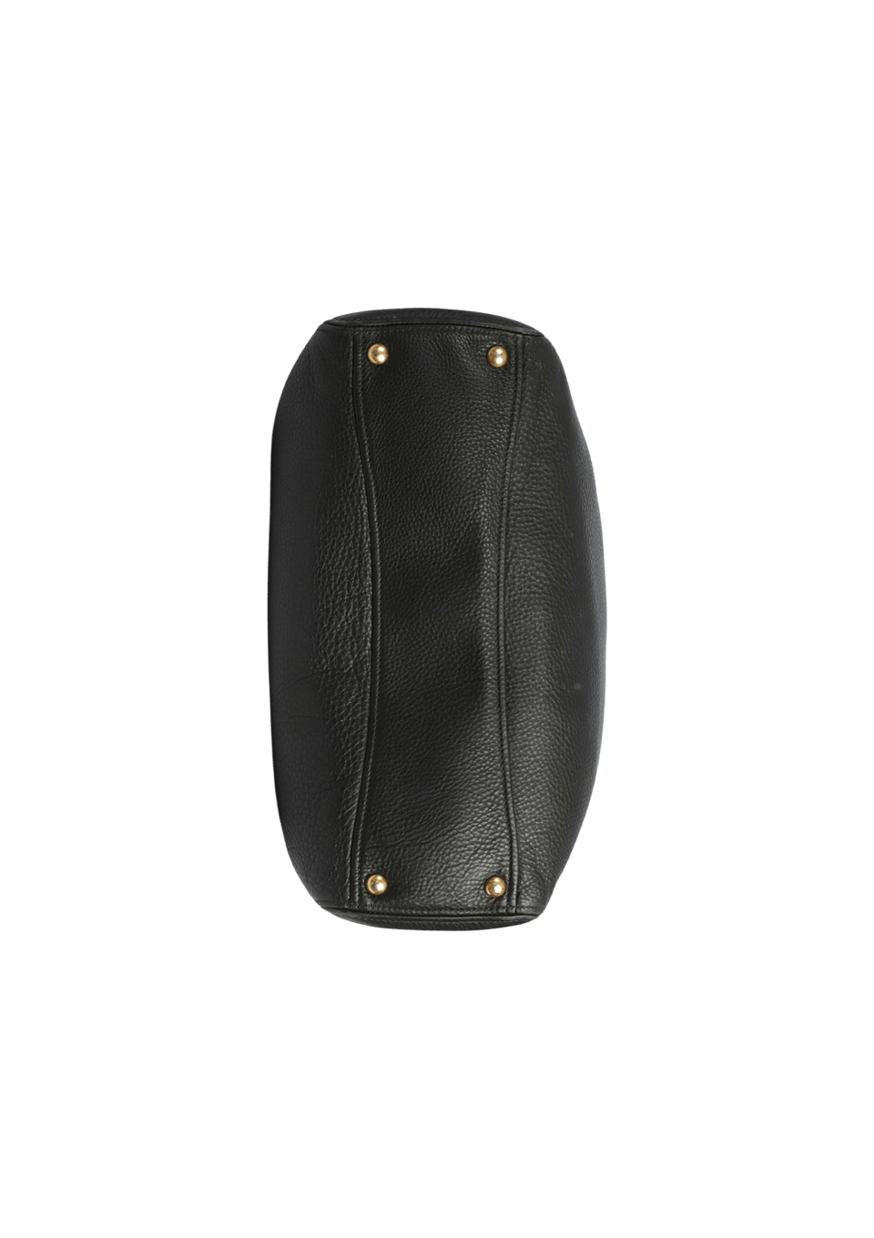 Condição: Bom, com aparência de usado. Apresenta pequeno risco de caneta no bolso interno e fios puxados pelo tecido, desgastes nos quatro cantos da base, riscos e diferentes tonalidades nas ferragens, alças com selagens craqueladas e com fios puxados aparentes.