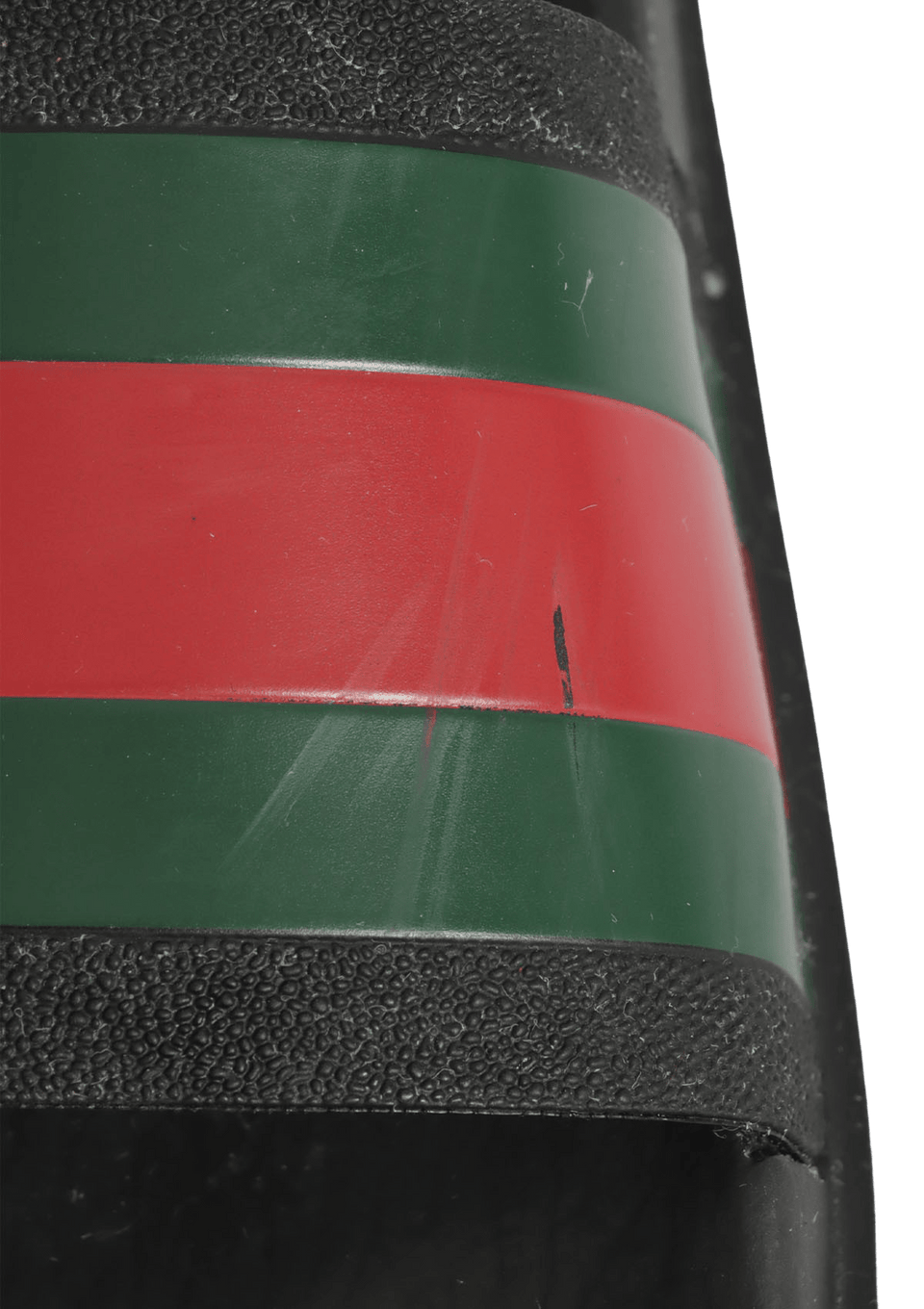 - Borracha preta com detalhe verde e vermelho.