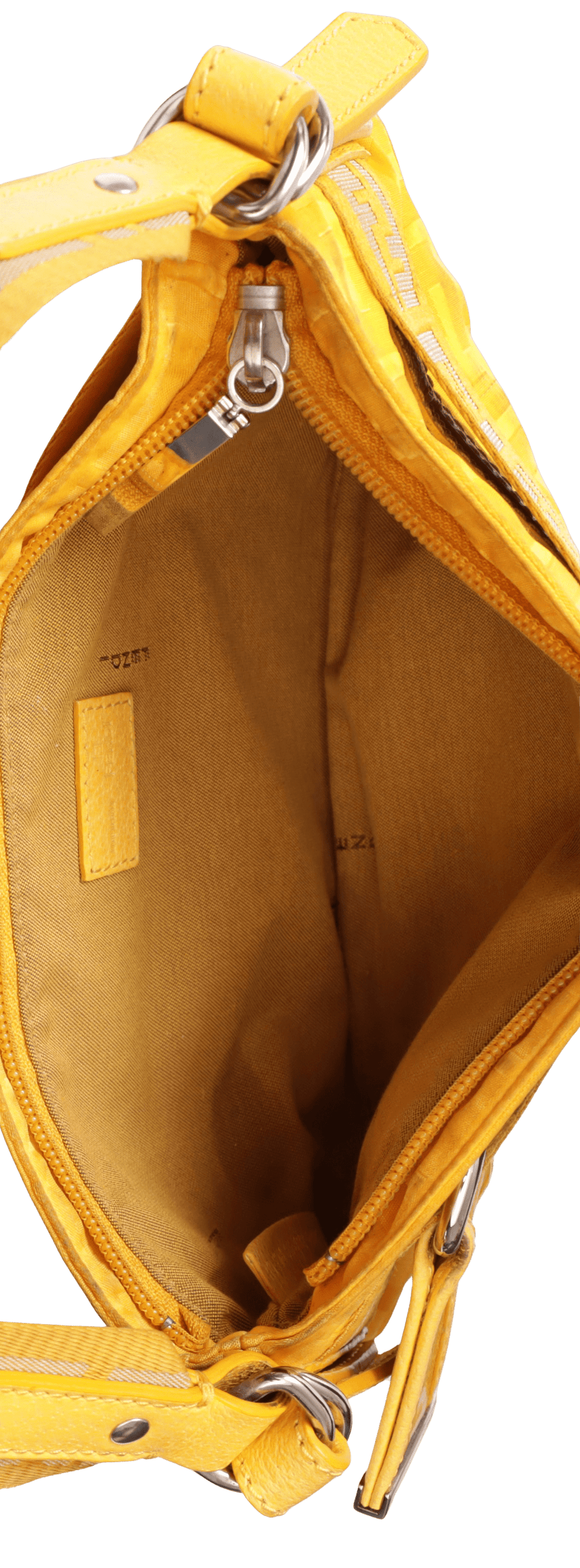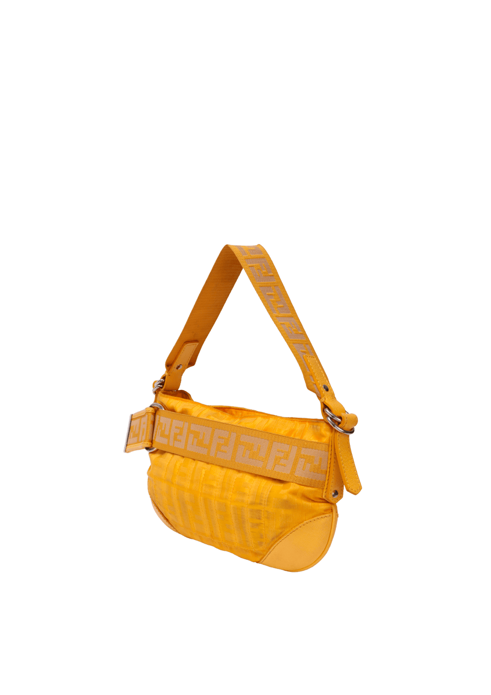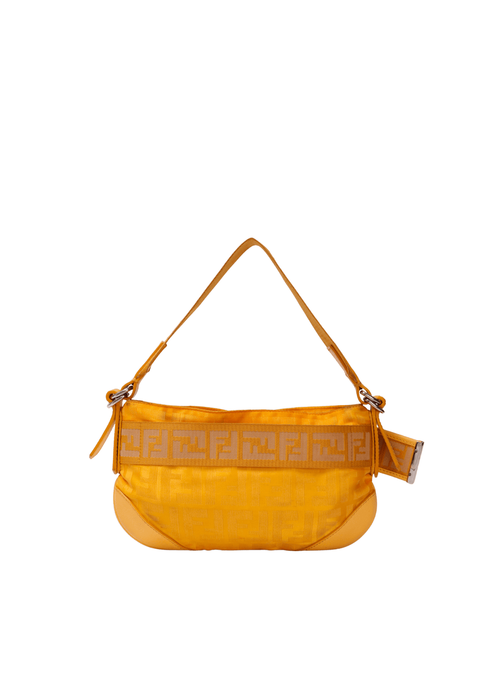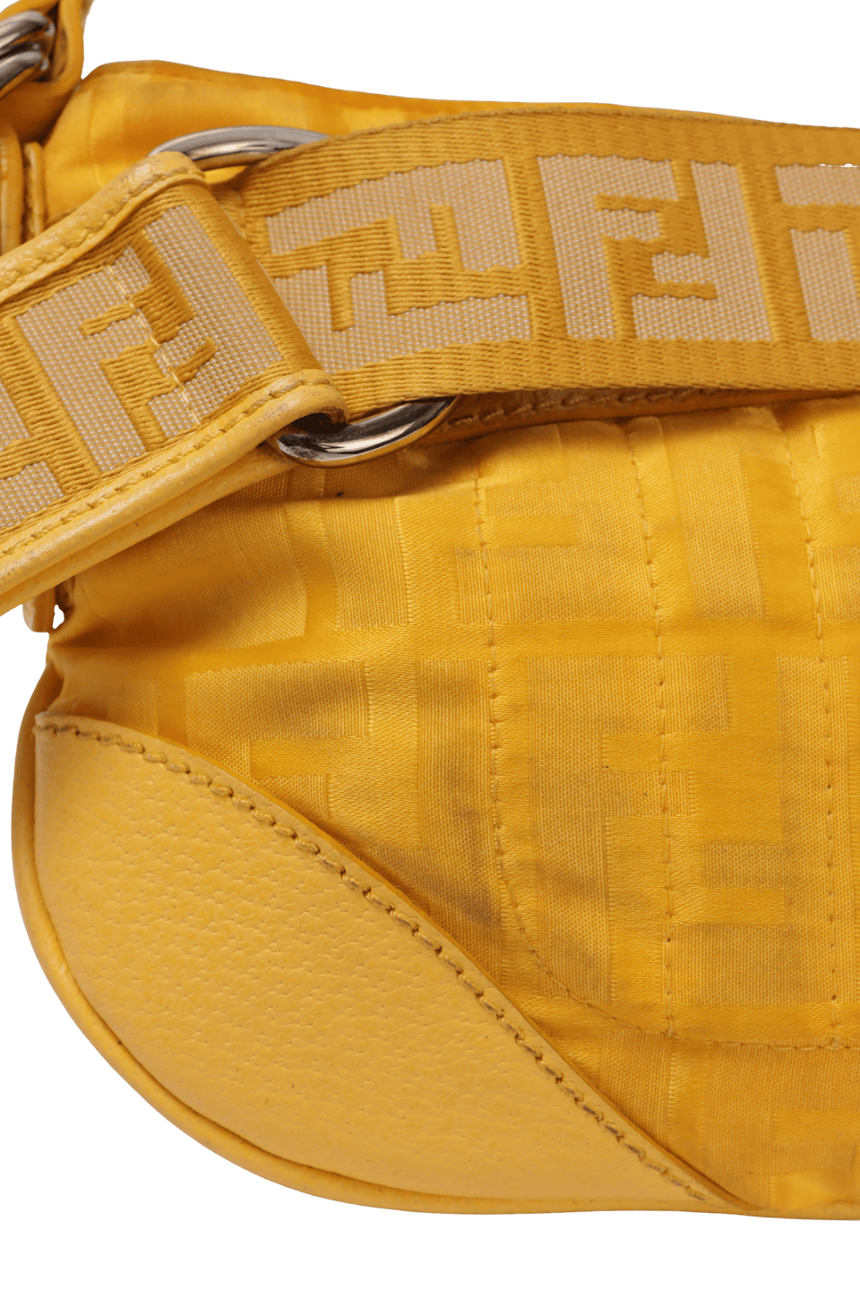 Descrição do Material: Nylon amarelo com padronagem FF e detalhes em couro calfskin amarelo