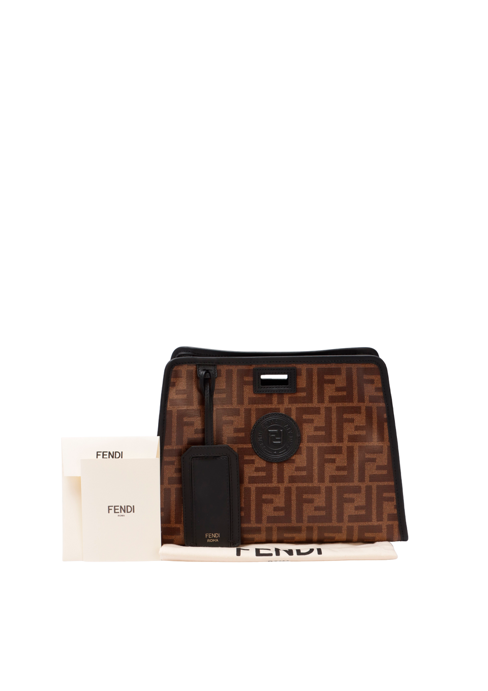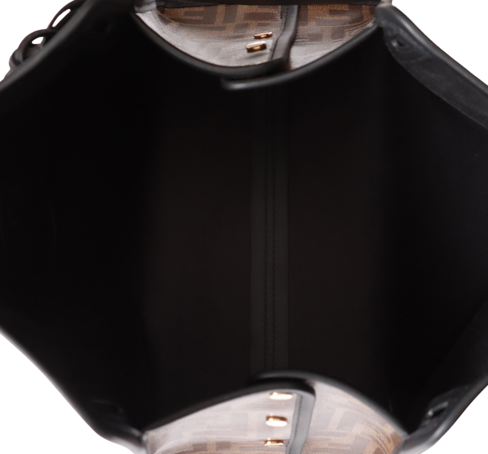Descrição do Material: Canvas Zucca marrom com detalhes em couro calfskin preto
